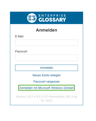 The Users can then log into the Enterprise Glossary with their Windows Domain.