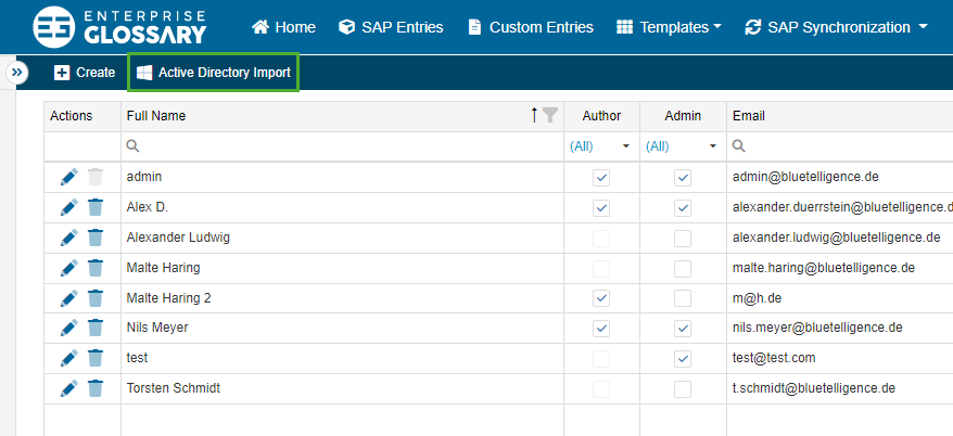 Users can also be imported via an Active Directory. To do this, click Active Directory Import.