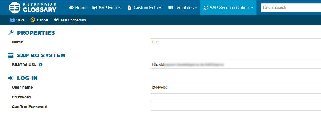 Other than that, the connection has to have a Name, and to make the connection User name and Password have to be maintained.