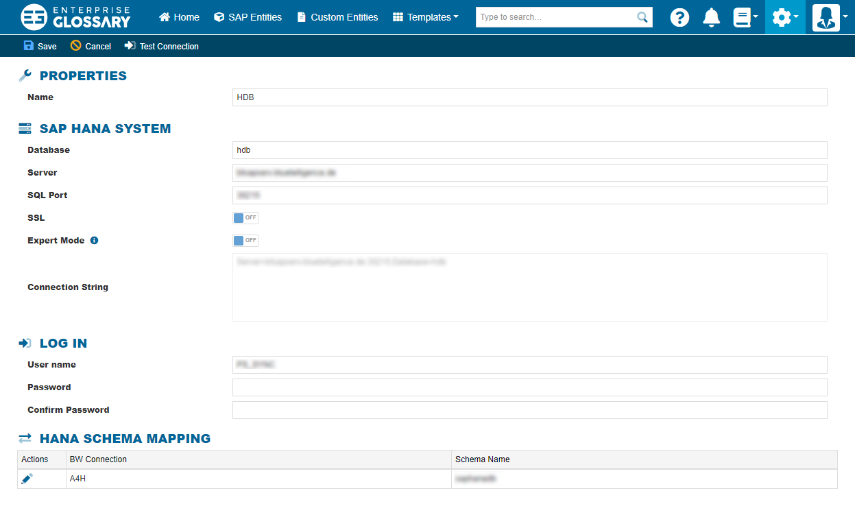 Additionally, the connection mapping to other systems can be read and maintained. This enables the where-used information between the HANA system and systems of other types.