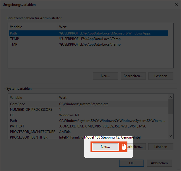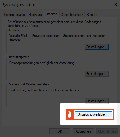 You can also add the system environment variable via the Windows command prompt. To do this, start the Windows command prompt as administrator and specify the exact path to the SDK.