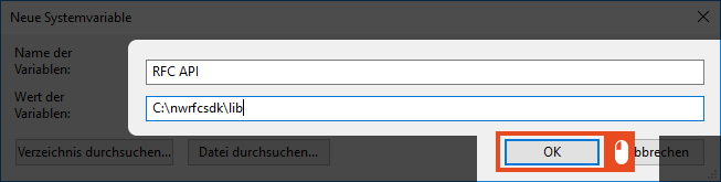 Now add the lib subdirectory of the SDK to the system environment variable and click OK.